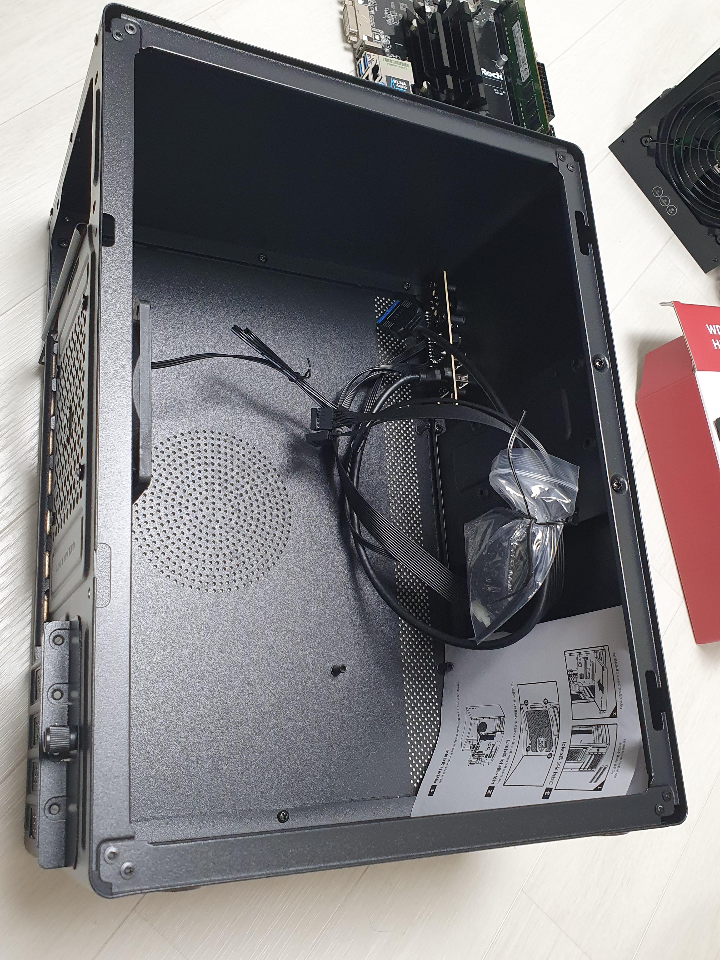 조립은 별게 없었다. 보통 난이도가 높은 것은 사실 cpu와 cpu 쿨러 조립인데 cpu 일체형에 그래픽카드도 없다. 선 정리를 할 필요도 없어 보였다. 그래서 대충 아무 컴퓨터 조립 글 보면서 따라 조립했더니 뚝딱~